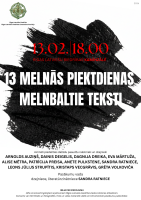 Rīgas Latviešu biedrības Literatūras komisija ielūdz uz īpašu literāru sarunu un lasījumu vakaru “13 Melnās piektdienas melnbaltie teksti”, kas norisināsies piektdien, 2026. gada 13. februārī, plkst. 18.00 RLB Kamīnzālē.