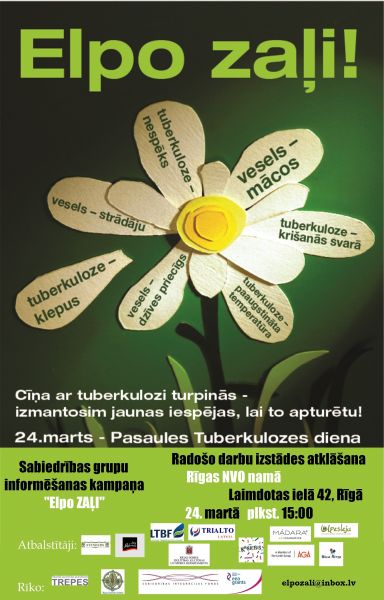 On March 24 that is the World Tuberculosis Day, at 15.00 in the NGO House (Laimdotas Street 42) will be opened exhibition, where the best creative works will be exhibited to the wider audience. The most outstanding works will be included in the year’s 2015 calendar about healthy lifestyle. more ... |